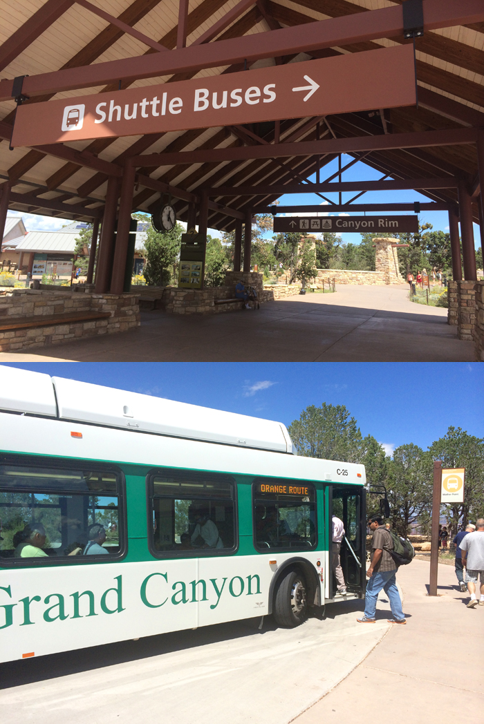 이 곳에서 무료셔틀버스를 타고 각각의 뷰어 포인트로 이동하면서 그랜드캐년을 관광하는 시스템이다.