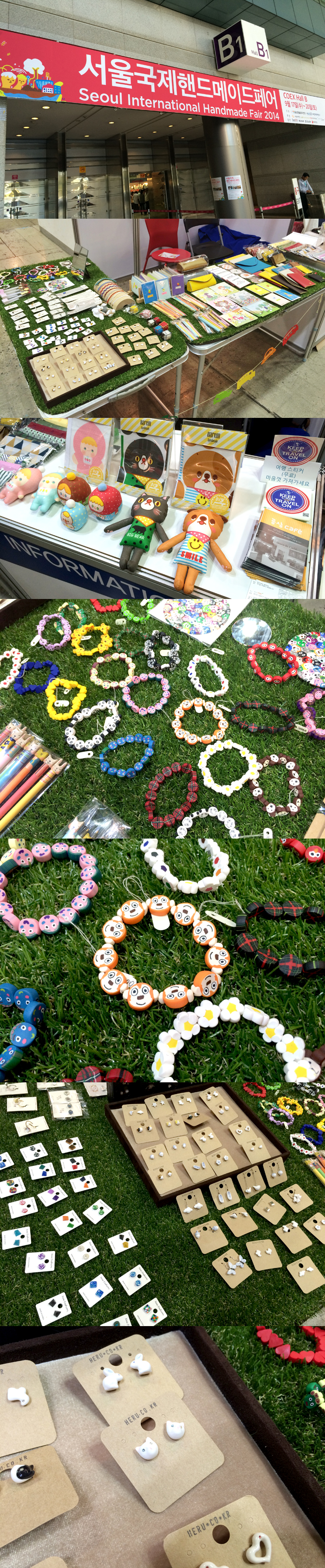20 9월, 2014 이틀간 핸드메이드 페어 업무지원을 하게 됐다. 회사 카페에서 판매하고 있는 상품들을 판매하는 게 목적. 여러 작가들의 상품을 한 곳에서 판매하다 보니 반응이 꽤 괜찮았다. 첫 회임에도 불구하고 정말 다양한 상품이 전시,판매되고 있었다. 카테고리를 셀 수 없을 정도로 다양한 상품들. 재야의 고수들이 총출동한 느낌. 관람객의 98%가 여성이다. 그 만큼 여성타켓 상품들이 엄~청 많았다. >< 벽화도 그려주시고..(느낌있네-) 특별공연도 열렸다. 그 주인공은 ‘요조’ 허밍시절부터 좋아했는데…계탔음. >< 어지러울 정도로 볼 게 많은 전시였다. (강력추천~!) 내년 10월 예정인 제2회 핸드메이드페어가 벌써부터 기다려진다.
