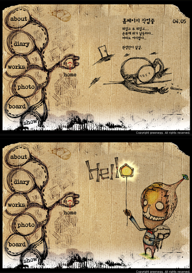 15 3월, 2014 <greenegg homepage 2006~2013> 2006년 4월 5일. greenegg 홈페이지가 처음 만들어진 날입니다. 그 당시 두꺼운 ‘드림위버 MX’책을 보면서 3일동안 밤낮으로 만들었던 기억이 생생합니다. 8년후… 2014년 3월. 새로운 환경에 맞게 greenegg 홈페이지가 재탄생됩니다. 예전의 아날로그적인 감성은 없어져서 아쉽지만 새로운 인터페이스로 사용성과 편리성이 높아져서 기대감이 더 큽니다. 자주는 아니여도 가끔씩은 놀러와주세요. 방문해주셔서 감사합니다. – greenegg