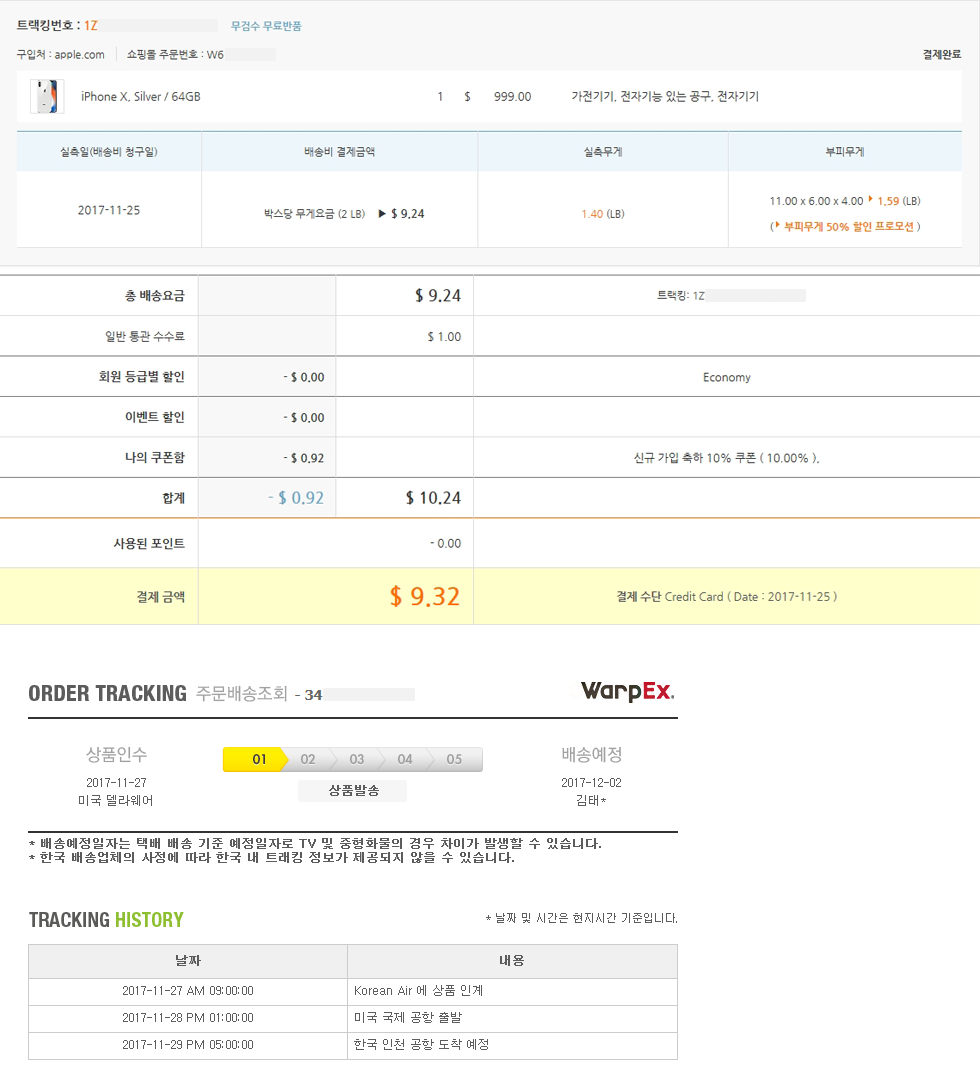 이제 배대지로 내 아이폰이 배송되는 시점이다.