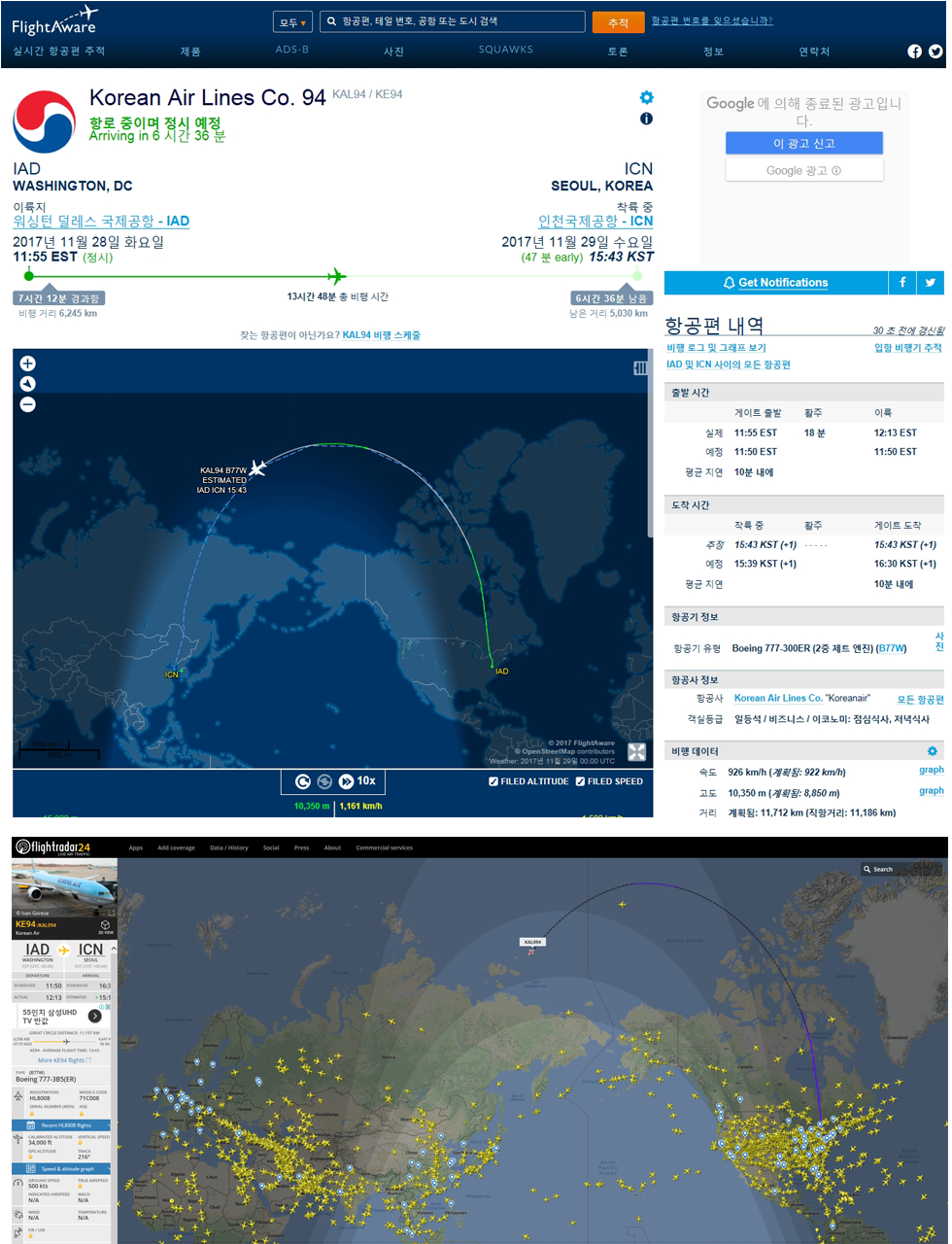 실시간으로 내 화물의 추적(비행기 항로)을 알고 싶으면 항로추적 사이트에서 편명을 입력하면된다.