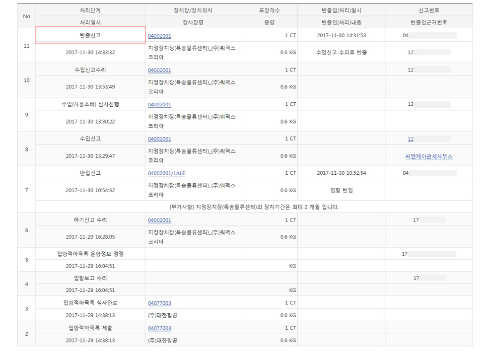 좀 더 자세한 트래킹을 알고 싶어서 배대지에 문의하여 화물관리번호를 얻었다.