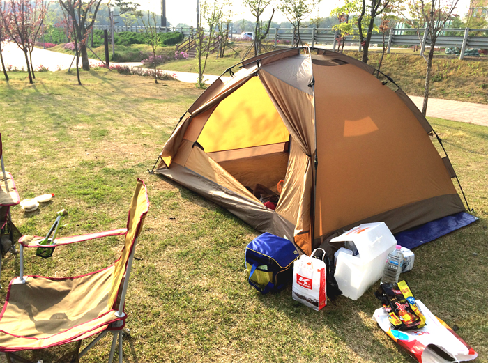 민방위훈련을 마치고 할 일 없는 3인의 충동캠핑.